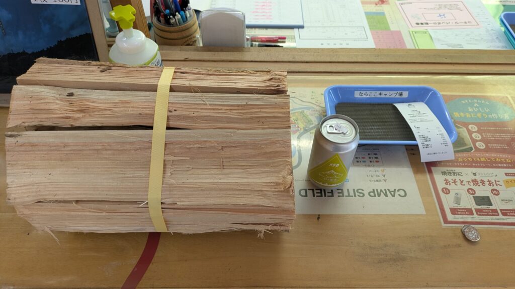 薪と地ビールを購入しました。ビールを飲みながらの焚火が楽しみです。