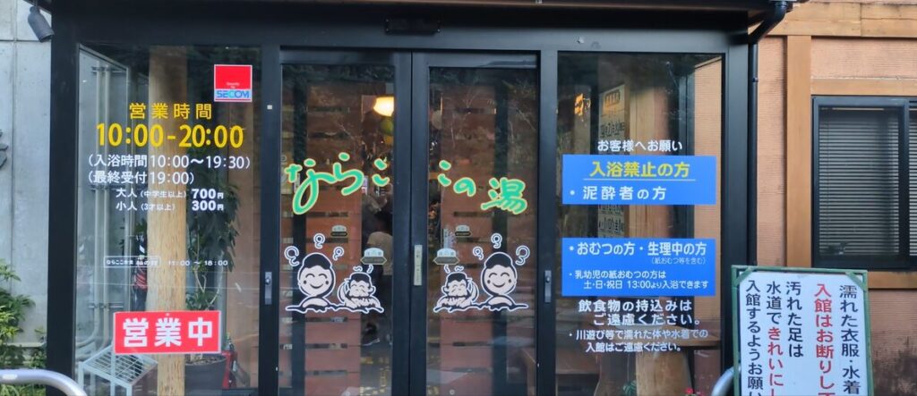 さて、テントも設営したし、汗もかいたので、併設されている温泉に行きましょう。