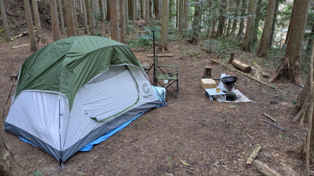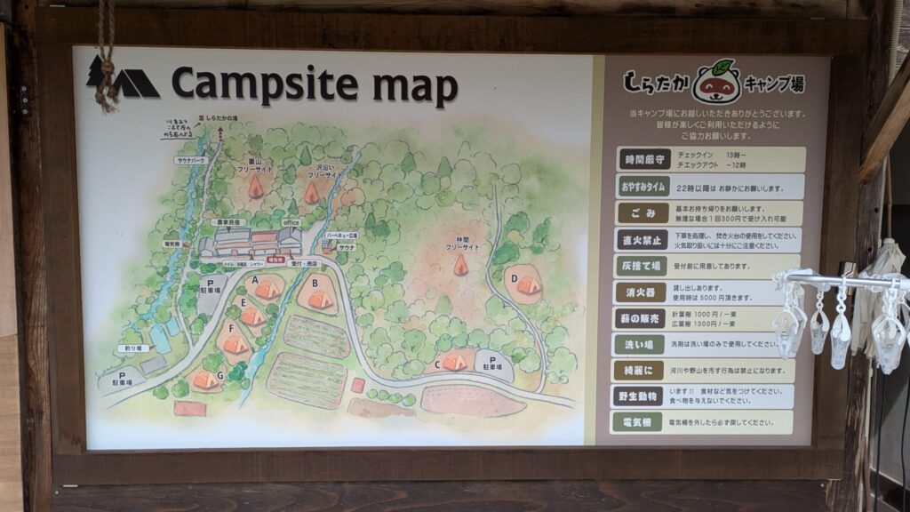 なお翌日の朝、雨が上がり、テントとタープが濡れているのを見かねて、本来は12時チェックアウトのところ、乾くまでいていいと言ってもらえました。本当に感謝です。