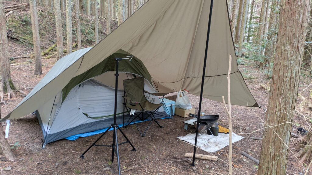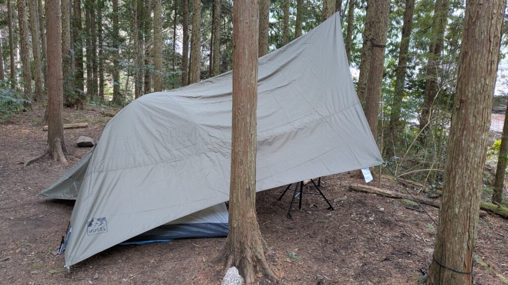でも、このタープ、ほんとに使いやすくて、雨を気にせず楽しくキャンプ出来ました。夏キャンプでも、日光を遮るために使用出来るとのことなので、みなさんぜひ使用してみてください。値段以上の価値はあると思います。