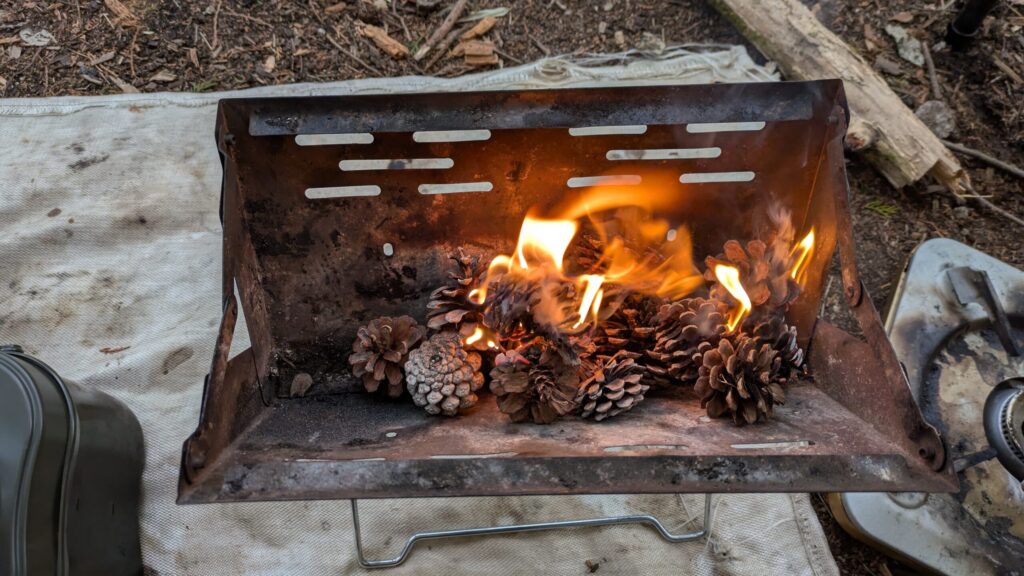 あと最近着火剤は市販のものではなく、松ぼっくりを使用しています。なんか自分で用意すると市販の着火剤よりテンションが上がります。