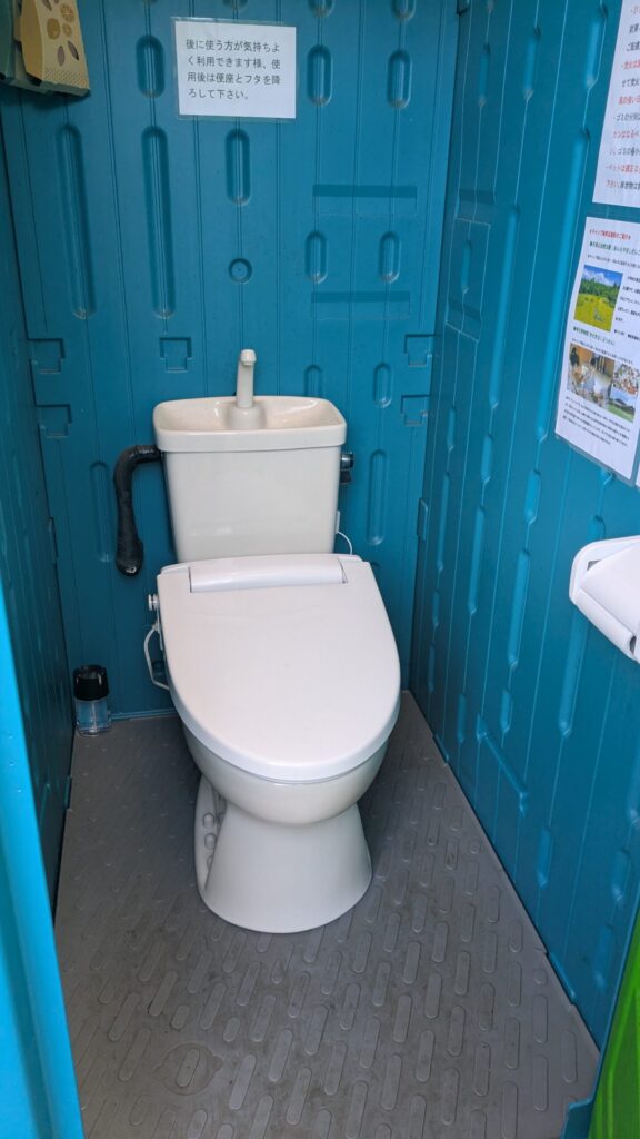 芝生の中なら、どこにテントを建ててもよく、搬入時と撤収時以外は、駐車場に車を置くことになっています。